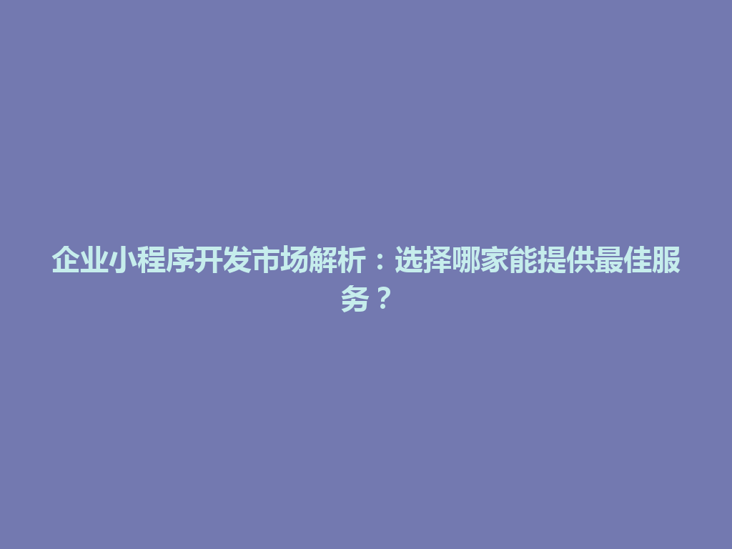 而言,选择哪家企业小程序开发公司,关键在于评估其行业经验、技术能力、售后服务和报价。通过这些指标的综合分析,您将能找到一家最适合您的合作伙伴,帮助您的企业在数字化转型的道路上稳步前行。